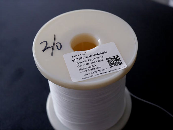 最近、数年間の努力を経て、蘇州網新材料技術有限公司開発に成功したPTFEモノフィラメント(延伸ポリテトラフルオロエチレンモノフィラメント、または ePTFE)。当社独自のプランジャー押出製法により、丸みを帯びた直径、柔らかさ、弾力性、毛羽立ちにくさが特徴です。膨張度を制御する技術(相対密度0.5~2の間で制御可能)も習得しました。医療加工後の PTFE モノフィラメントは、医療用縫合糸、精密工業用編組ガスケット、パッキンなどに使用できます。この発泡材料は、その柔らかさ、強靭さ、優れた生体適合性(身体による拒絶反応の防止)により、医療用途に大きな期待が寄せられています。現在、山東省、上海、江蘇省、その他の地域の医療機器会社が臨床検証を申請し、合格しています。PTFEモノフィラメント、外科用縫合糸に使用される製品であり、各国の医療機器規制当局から ePTFE 医療用縫合糸の製造ライセンスを取得しています。
